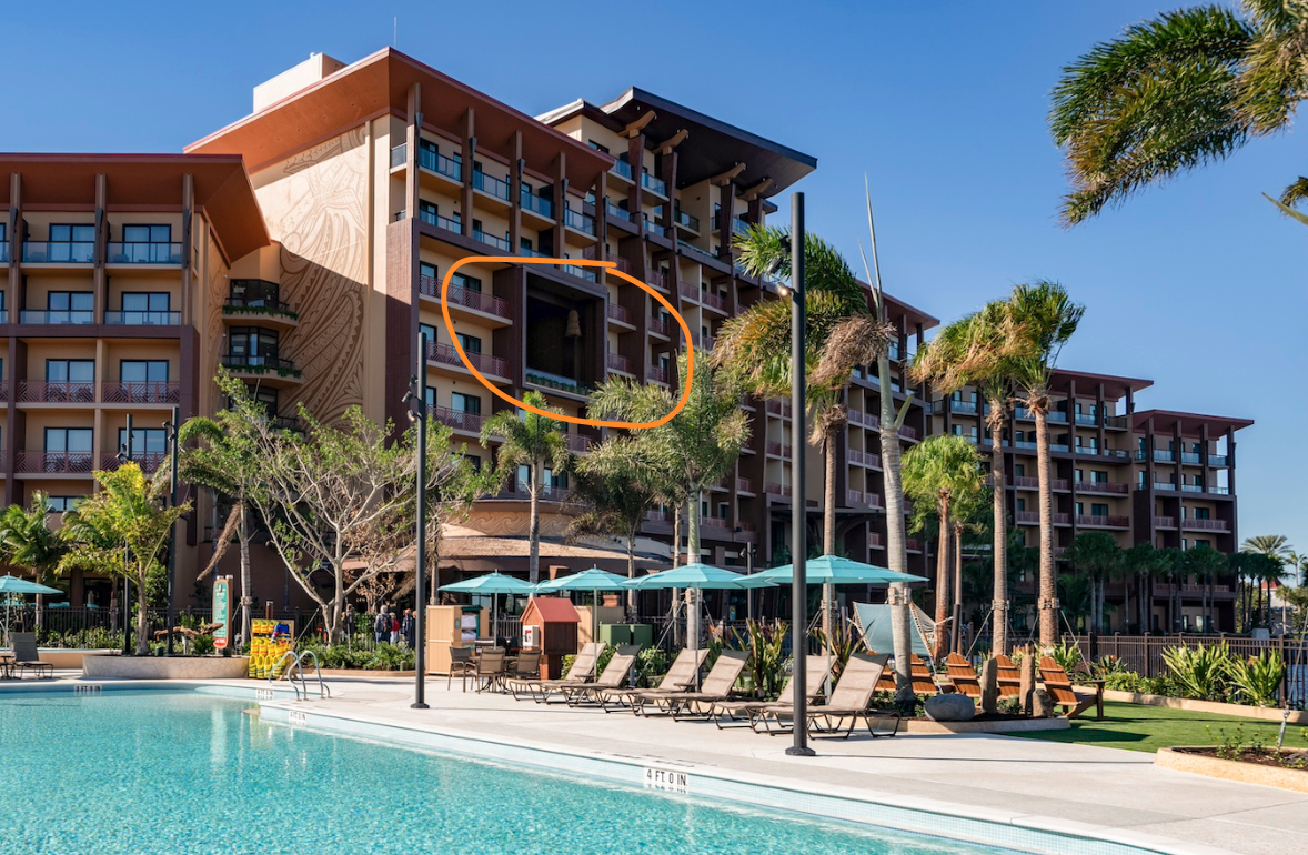 Guests at the Island Tower have access to four of these terraces, which we lovingly refer to as sky terraces since they are positioned in the middle of the hotel, near the top, and overlook Disney World. There are two positioned on either side of the hotel. You’ll get a great view of the Seven Seas Lagoon and Magic Kingdom on one side and a surreal sunset view of the Disney World golf courses on the other.