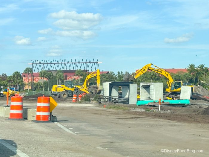 Here’s what we spotted near Disney’s Polynesian Village Resort, which is nearby (and close to Magic Kingdom). You can actually see the Polynesian in the background in this photo. We’re not sure what’s going on here, but this land is being cleared for SOMETHING.