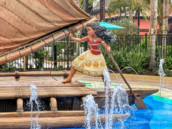 Little ones can enjoy Moana’s Voyage, a splash pad boasting a full-size sculpture of Moana and her iconic canoe.