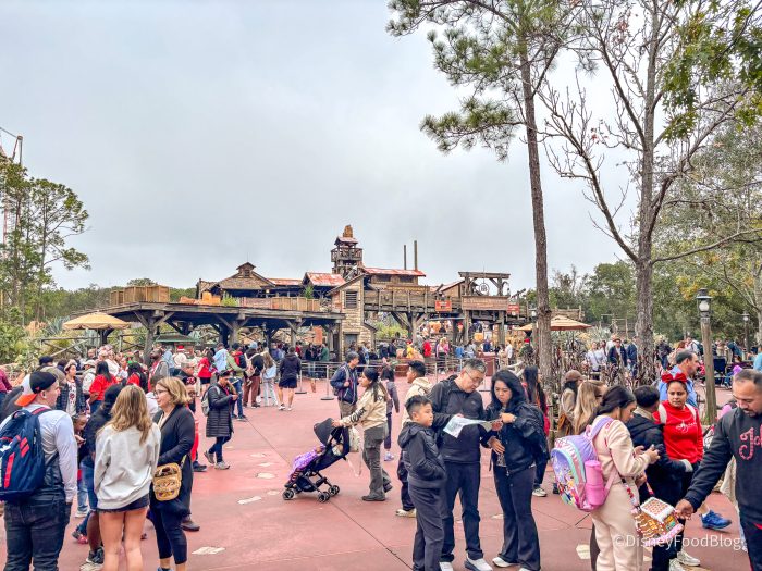 Frontierland, especially by Big Thunder Mountain Railroad, was pretty full of people. But luckily, the wait time for the wildest ride in the wilderness was still only 30 30-minutes, around 10:30AM! Cast Members had the queue prepped for longer lines with ropes outside the queue, just in case it got wilder throughout the day.