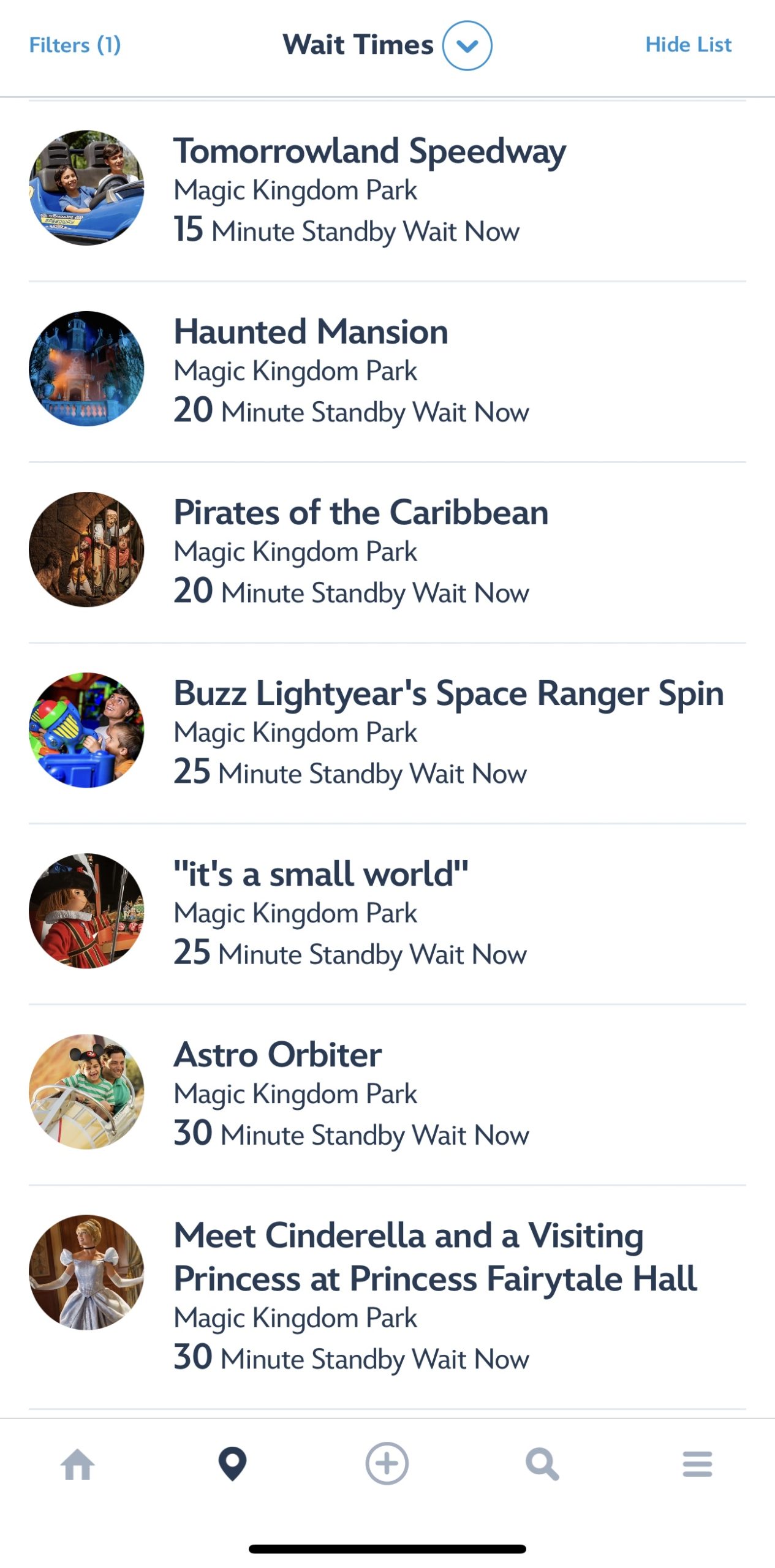 By 10AM, wait times weren’t terrible, either! Haunted Mansion had a 20-minute wait, Buzz Lightyear’s Space Ranger Spin was a 25-minute wait, and Astro Orbiter had a 30-minute wait.