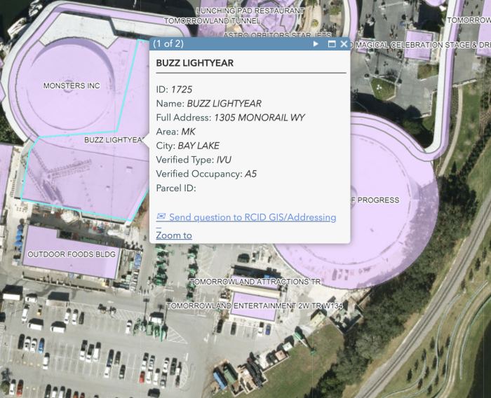 According to a new notice of commencement filed by Walt Disney Imagineering with Orange County, Florida, Buzz Lightyear’s Space Ranger Spin will be getting new projectors installed! The address filed is 1305 Monorail Way, Bay Lake, FL, which is the address for the Magic Kingdom ride.