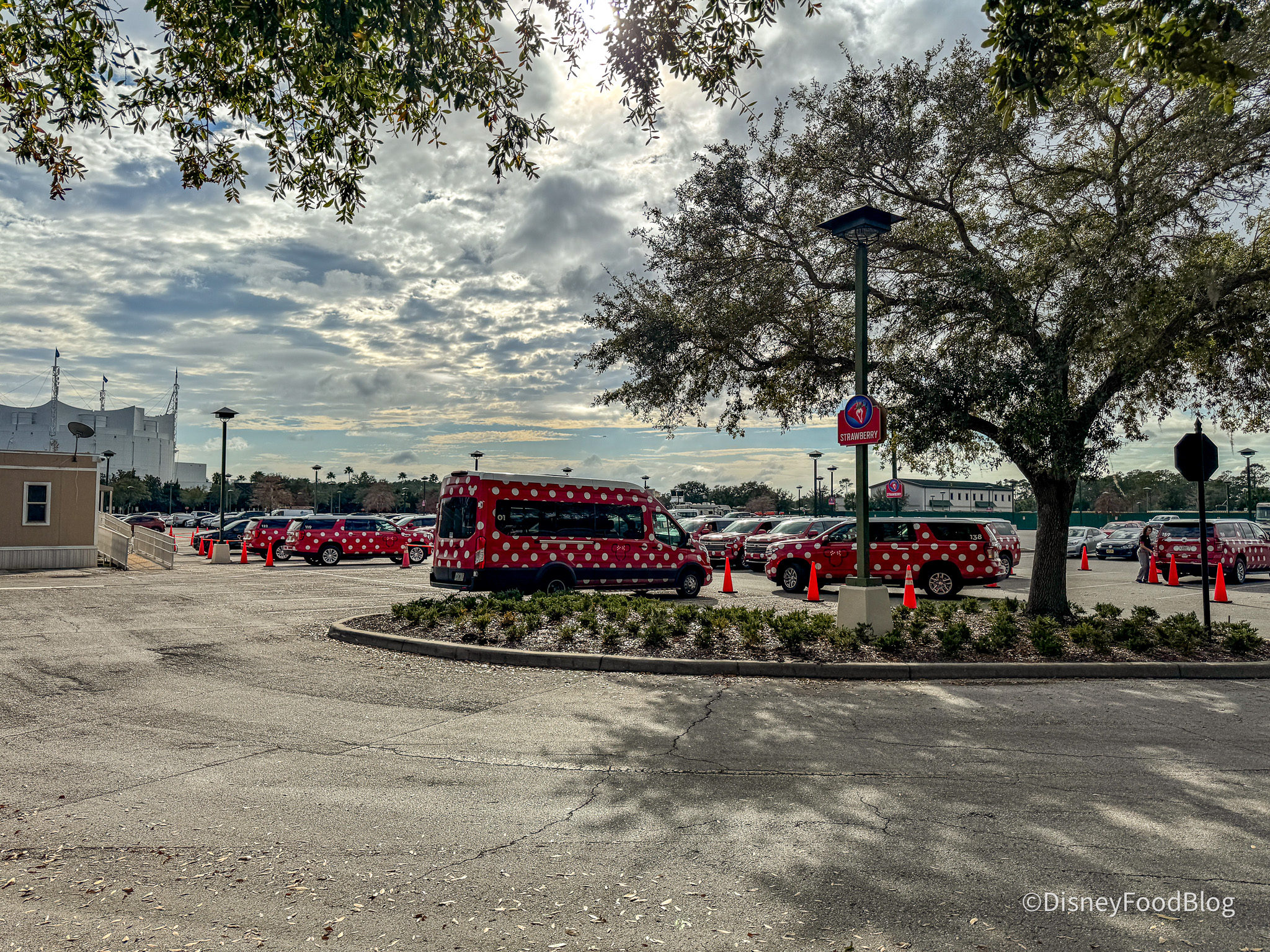 The Strawberry Lot is also right next to the West Side rideshare drop-off and the West Side bus stop. If you need to catch a ride share or are getting off by one, you may find yourself in this area of Disney Springs. Next time you’re there, take a peek at all the resting Minnie Vans!