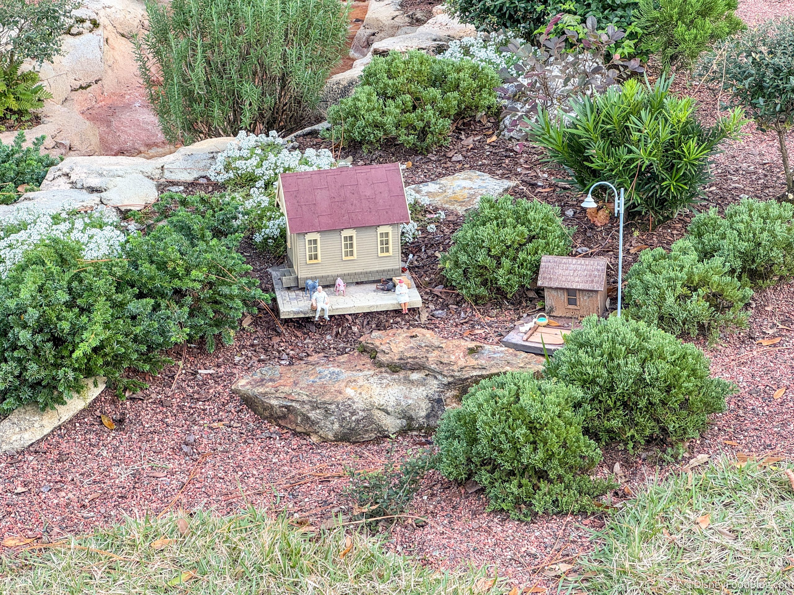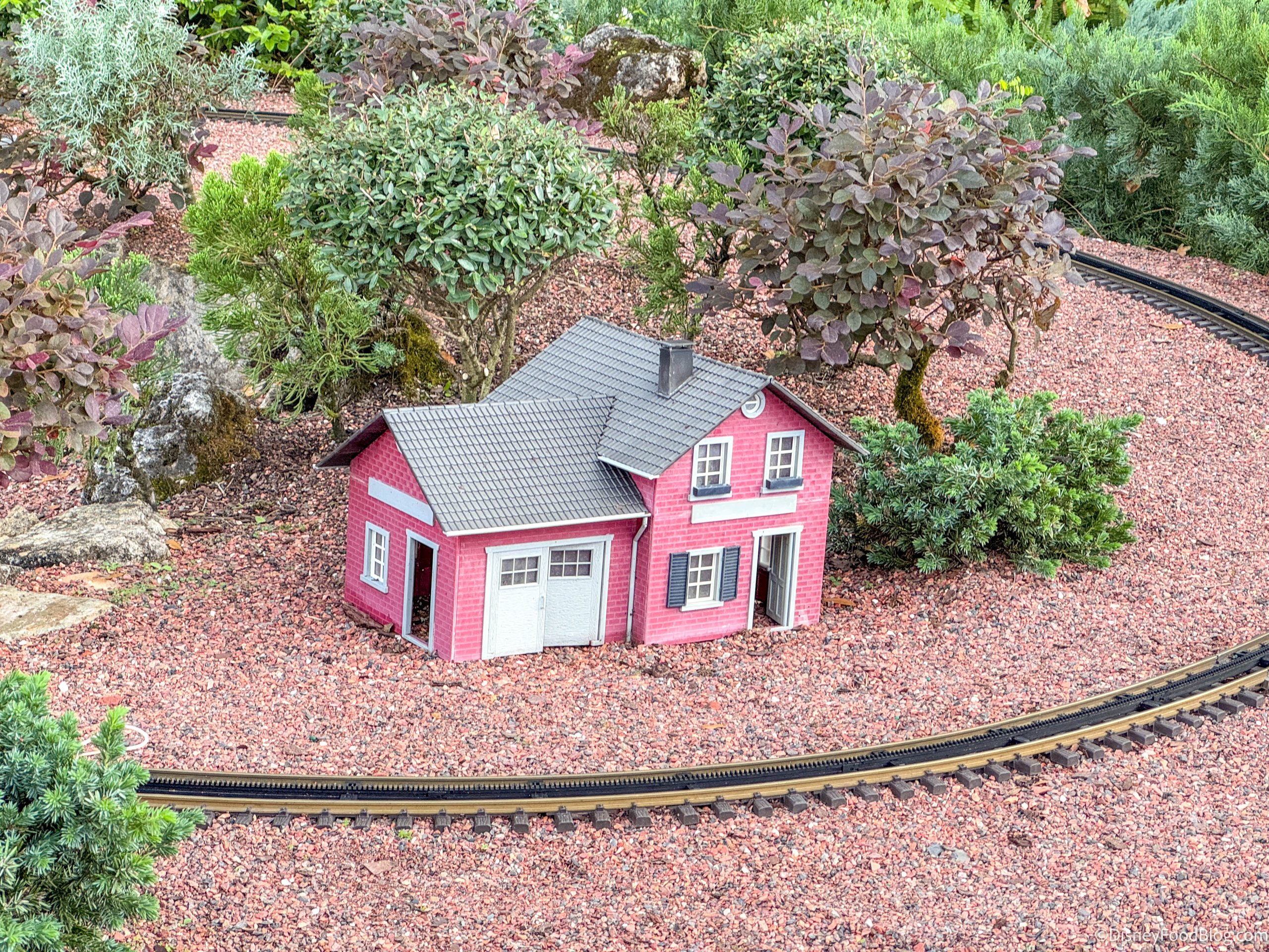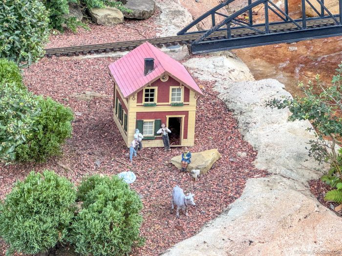 *The anarchy within is mostly created by natural occurrences, like giant squirrels, wind, rain, and relatively godzilla-sized lizards who frequent the town; but we find it fun and entertaining to make up fictional stories about what COULD be happening. We are grateful to the folks who create and maintain this Tiny Train Town for Disney World, as it’s one of our favorite parts of EPCOT and always has been.