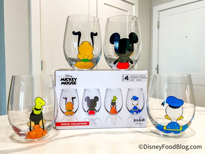 How cute are these stemless wine glasses from JoyJolt?! The set comes with four different glasses — one with Mickey, Pluto, Goofy, and Donald printed onto them. Plus, you don’t even have to use them for wine — they would make pretty cute iced coffee glasses as well! Each glass holds 15oz of liquid.