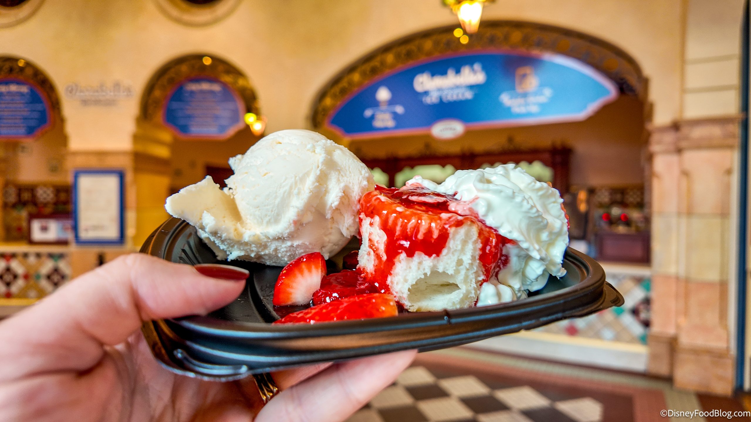 - Strawberry Shortcake: Angel food cake, vanilla ice cream, strawberry syrup, whipped topping, and fresh strawberries (New) — $7.99