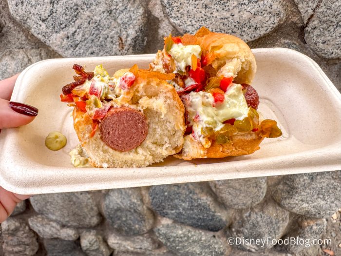 - Mini LA Street Dog with jalapeño mayo, pepper and onion relish, Nueske’s Applewood Smoked Bacon, and crispy onions (New) — $8.00