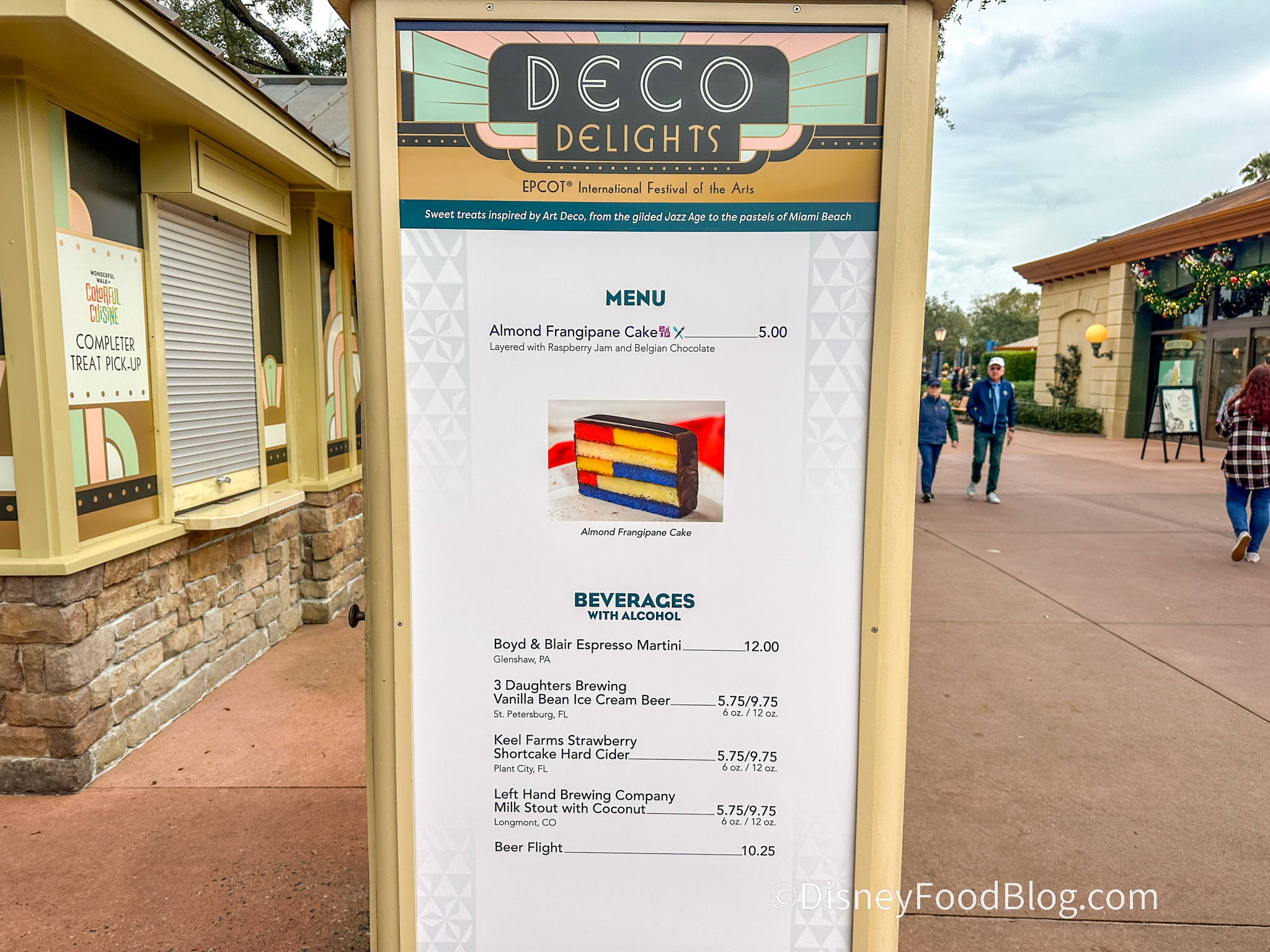 You’ll find Deco Delights (celebrating the style of Art Deco) along the World Showcase Plaza. (And, if you participate in the Wonderful Walk of Colorful Cuisine, this is where you’ll pick up your completer prize!)