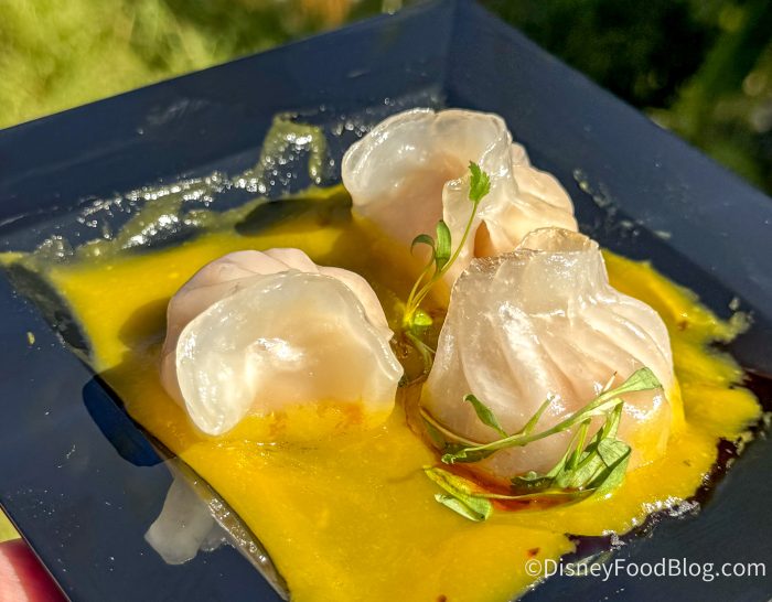 - Har Gow: Shrimp dumplings with pumpkin purée and drizzle of chili oil (New) – $10.75, DDP Snack Eligible