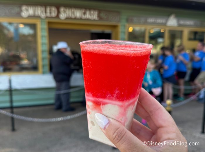 Swirled Showcase is home to soft serve ice cream treats, floats, and more! It was a 100th anniversary booth in 2023 and has stuck around EPCOT for the Festivals!