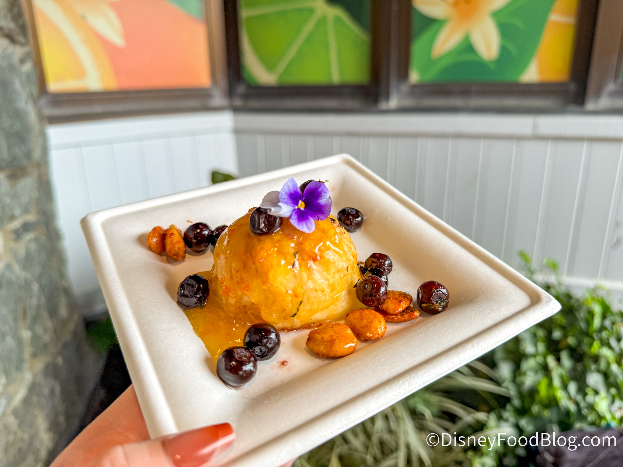 - Citrus-baked Brie with orange-lemon marmalade, limoncello-macerated blueberries, and spiced marcona almond – $5.50, DDP Snack Eligible