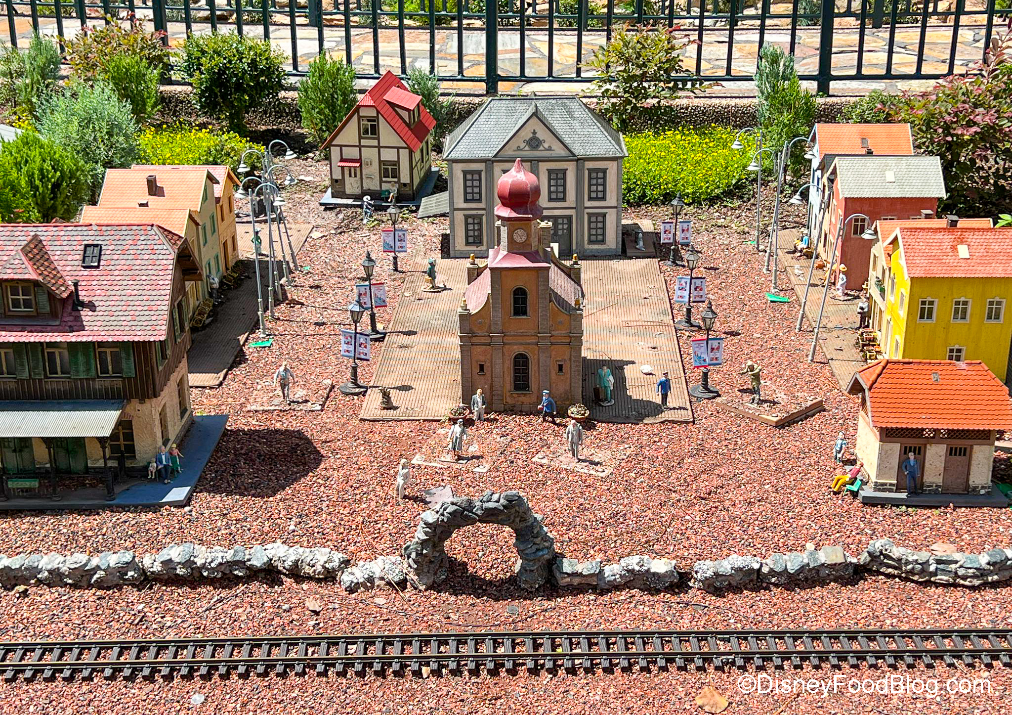 If you’ve ever visited the Germany Pavilion in EPCOT, you’ve probably noticed the tiny village in the pavilion that has its own miniature train running through it. This little village gets special banners added to its streetlamps for every festival, and now the EPCOT Food and Wine Festival banners have been added to it!