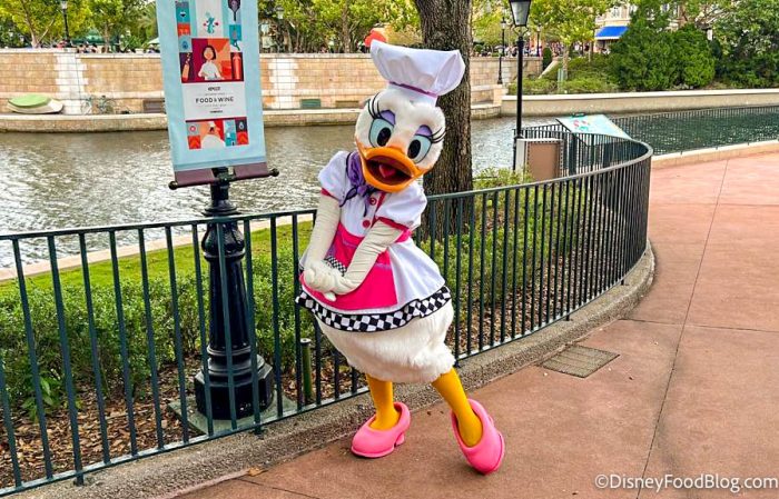 Check the My Disney Experience app to see if Daisy is greeting guests in EPCOT while you’re there.