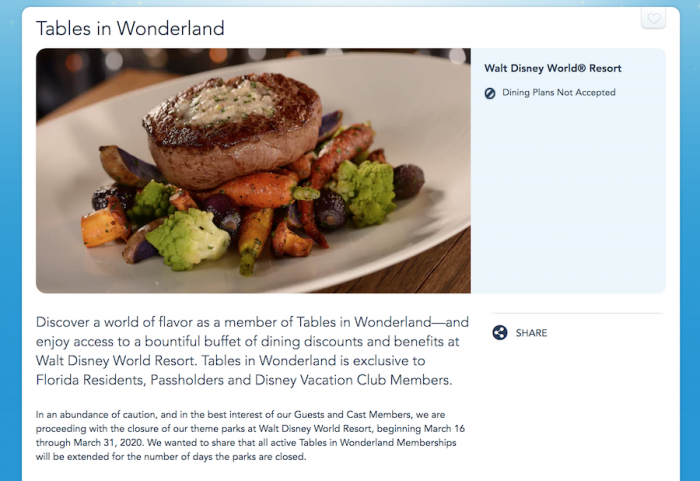 While this sounds amazing, unfortunately, all Tables in Wonderland cards expired as of September 1, 2021. So how much did this cost? The cost for a Tables in Wonderland membership was $175 per year for Florida residents and $150 per year for Disney Vacation Club members, and Annual/Seasonal Passholders.