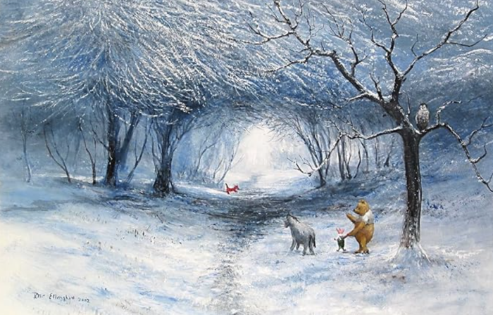 When we were doing our daily Disney shopping today, we stumbled upon the most expensive Disney souvenir on Amazon. If you’re looking for Disney Fine Art, this might be the perfect piece for you. The piece is Winter Walk by Peter Ellenshaw.