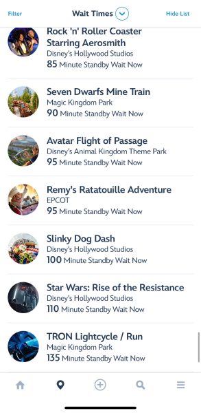 We even saw several rides with wait times well over an hour and creeping up into the multi-hour mark…