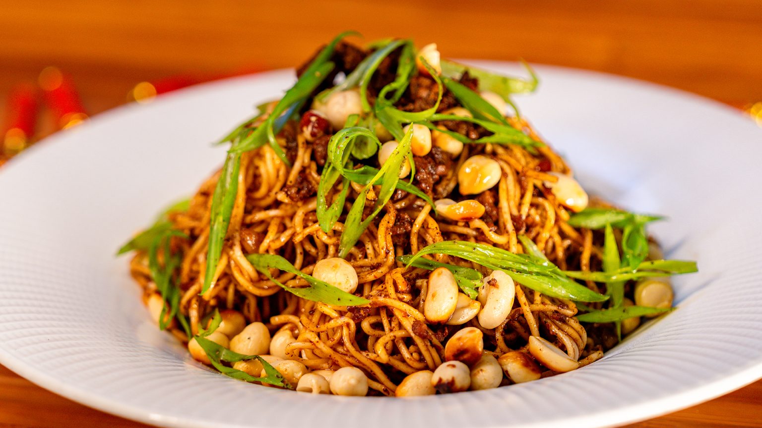 - Dan Dan Noodles: Pork, seasoned noodles, peanut, green onions, sesame oil, garlic, and cilantro