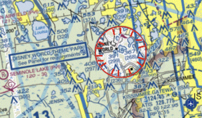 If you look at a sectional map designed for aircrew of aircraft, you’ll see a very bold and very red circle right around the area of Walt Disney World.