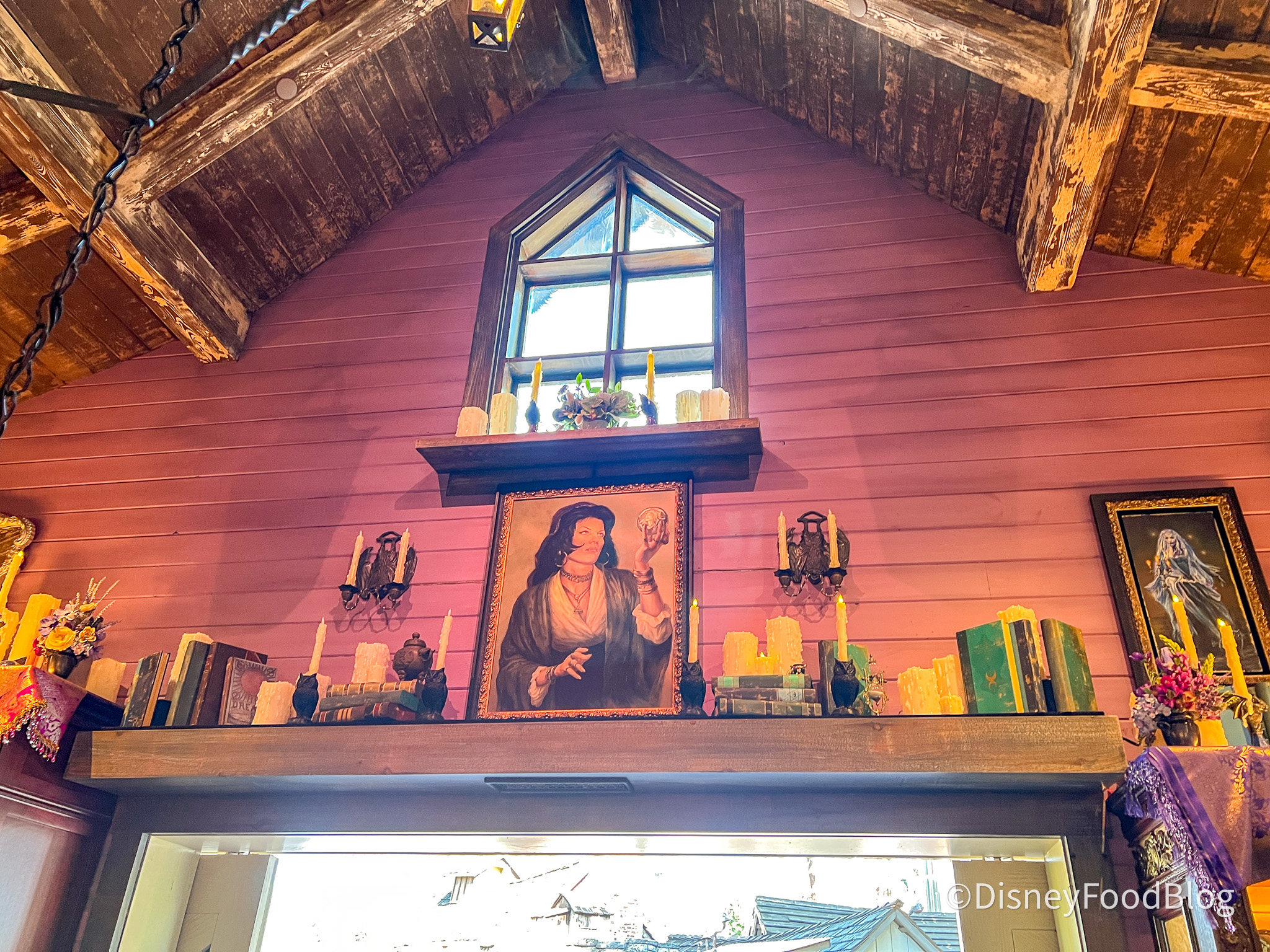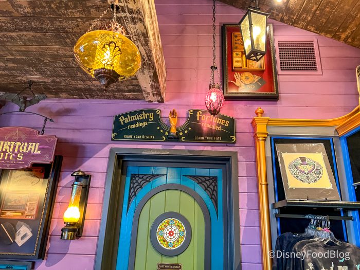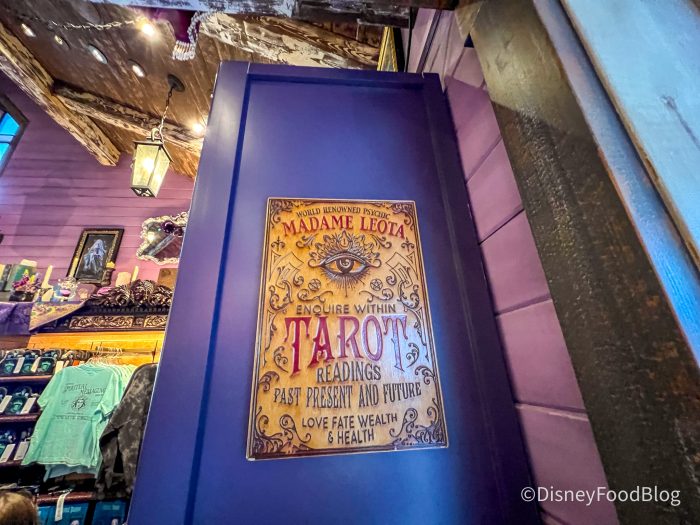 As you step inside, you’ll see that World Renowned Psychic Madame Leota is offering tarot card readings. Continue inside to inquire.