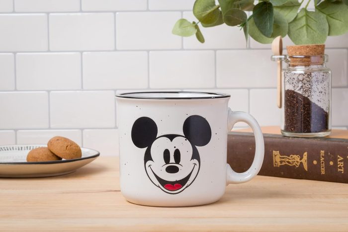 While you’re in the house, you’ve gotta address your mug game. Now this Disney Mickey Mouse Smile Ceramic Camper Mug, might just be the perfect addition to you dish ware and might end up being the only mug you drink your favorite brew out of.