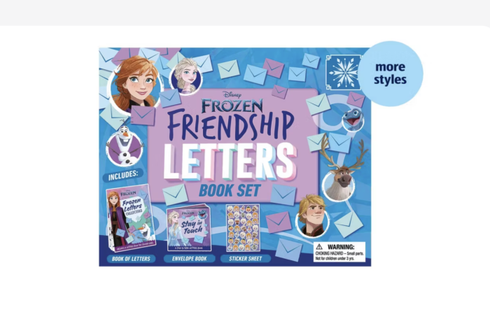 First up we have the Frozen Friendship Letters Book Set! This has us ready to bring back old-style correspondence by candlelight. Is that weird? Maybe. It’s also just true.
