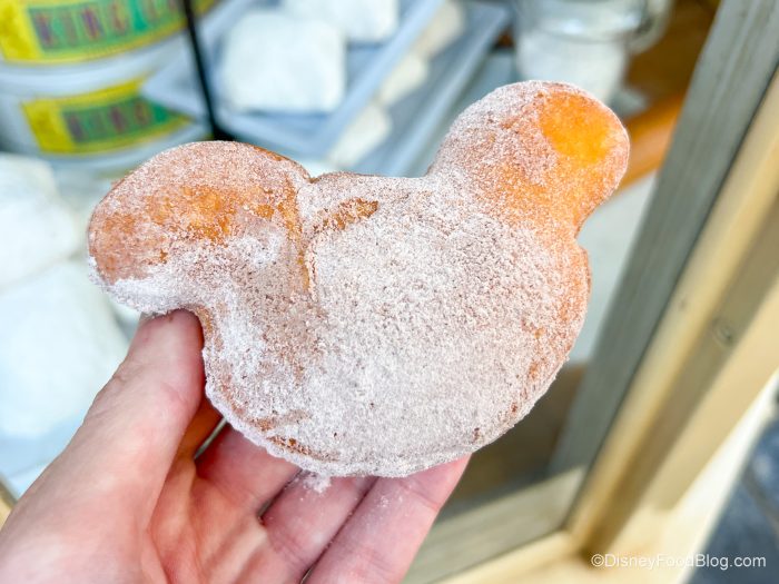 Like we know there are better pretzels out there than Mickey pretzels, but we will ALWAYS get a Mickey pretzel because it makes us happy. Mickey bars are pretty simple, but they can sometimes be the BEST snack ever on a hot day. Then there’s the Mickey Beignet, which is something we’re ALWAYS going to order, no matter what, ESPECIALLY in Disneyland. However, Mickey Beignets just got an upgrade and, dare we say, we think they might now be even BETTER?