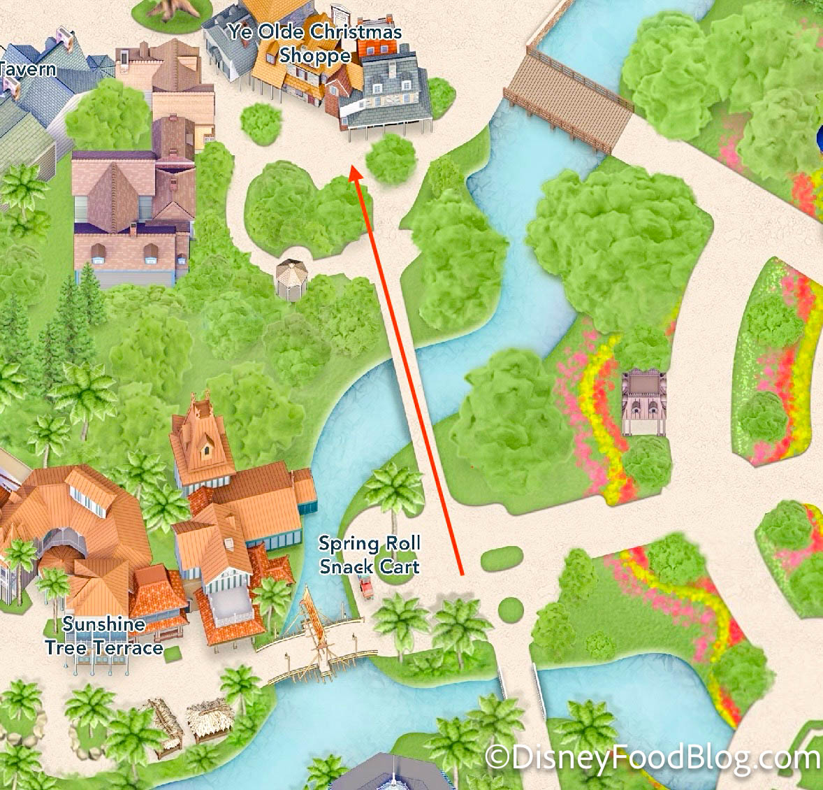 Another really great shortcut is taking the small bridge at the front of Adventureland (near where you’ll find the Spring Roll Cart) to Liberty Square — it will take you to the back of Ye Olde Christmas Shoppe. This is one to keep in mind when you need to avoid parade crowds plus you’ll end up at a quiet area WITH SEATING in Liberty Square.