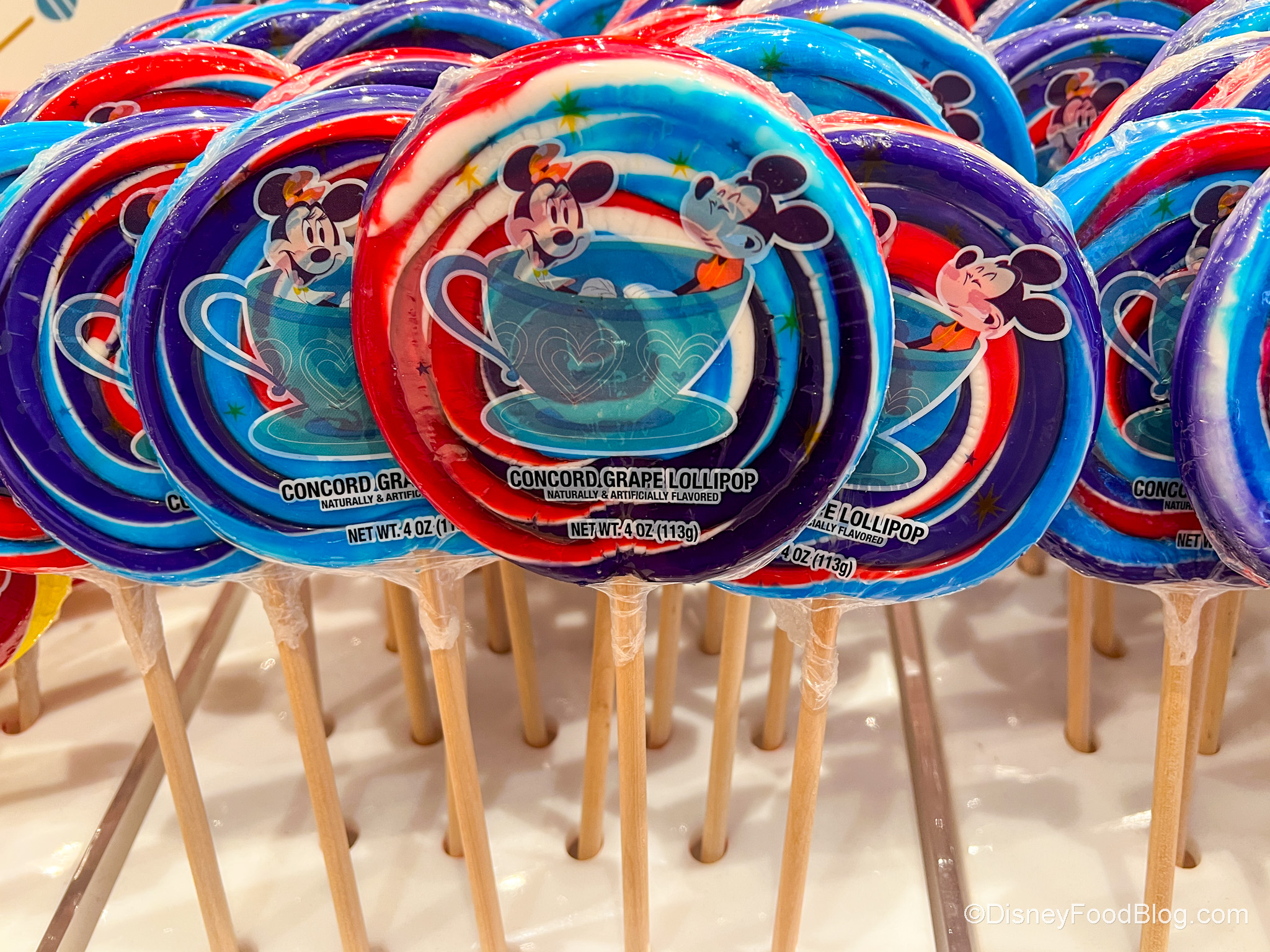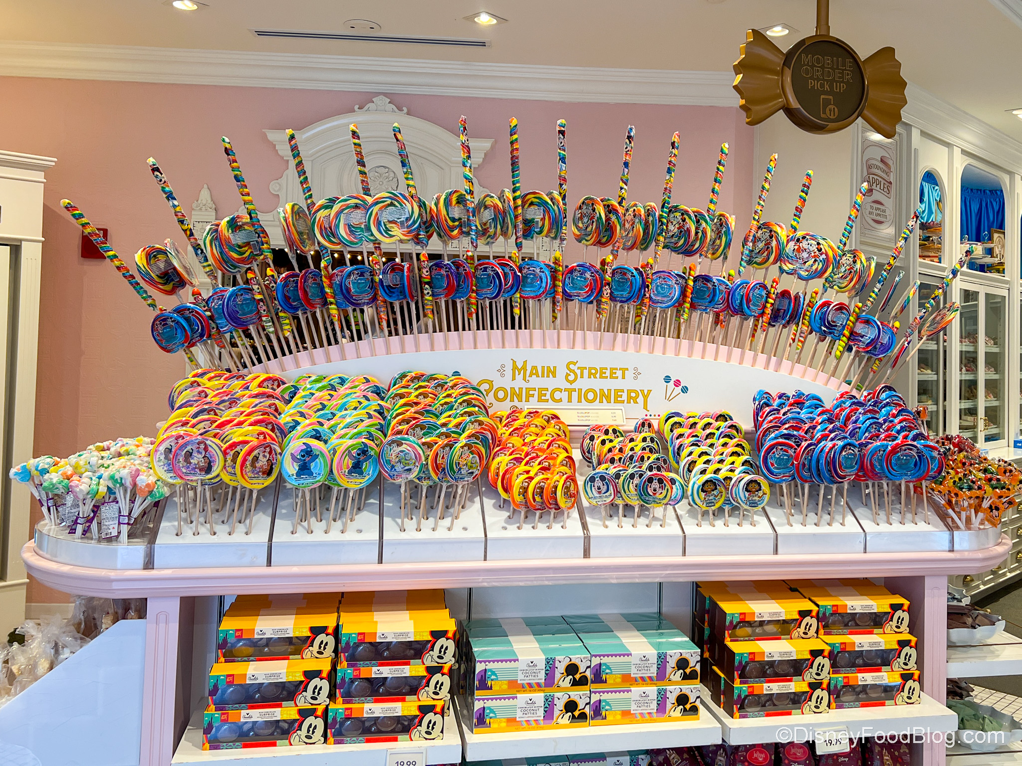 We’ve got a complete breakdown of Disney foods that contain this controversial ingredient that might either get banned or have to be reformulated in the near future. We started our research at Main Street Confectionery in Magic Kingdom, where you can get a lot of pre-packaged candy, which often contains Red Dye No. 3. We worked our way around the parks from there. Y’all — we found SO MANY items that listed it as an ingredient, including those giant lollipops that kids love.