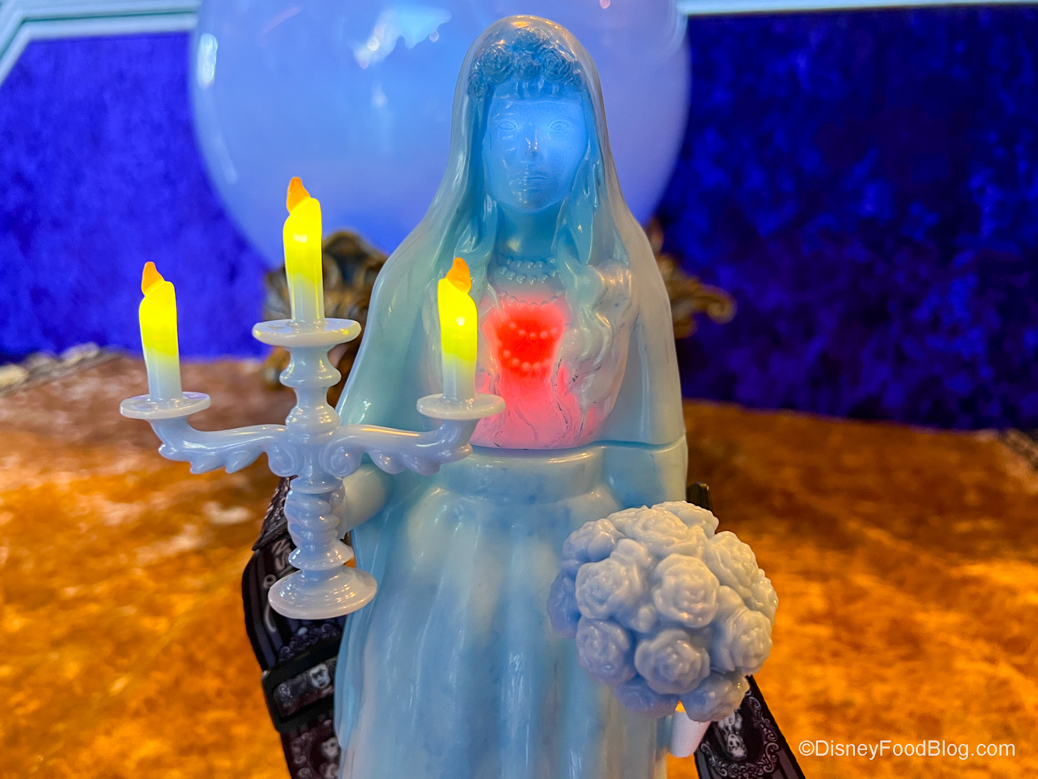 Not only that, but her face, candelabra, and heart also light up. Okay, this could be the coolest Haunted Mansion souvenir we’ve seen in a while.