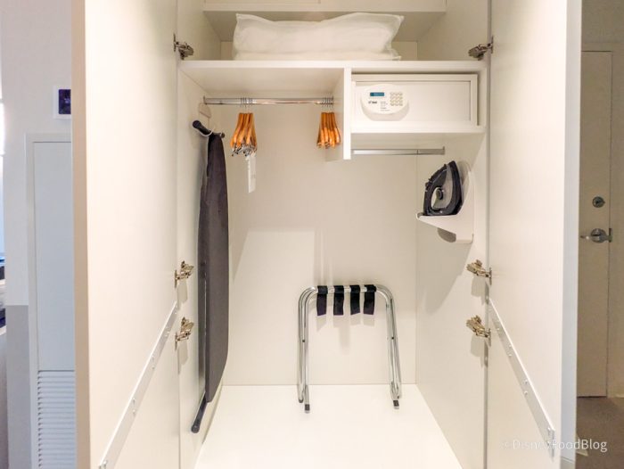 …with plenty of room for your clothes, plus an iron and ironing board, extra sheets and pillows, and a programmable safe.