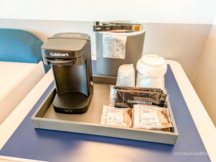 …and a coffee maker complete with coffee and tea!