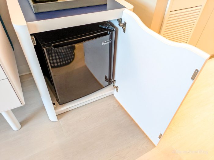 The room has several amenities like the mini refrigerator to help keep any snacks or drinks chilly…