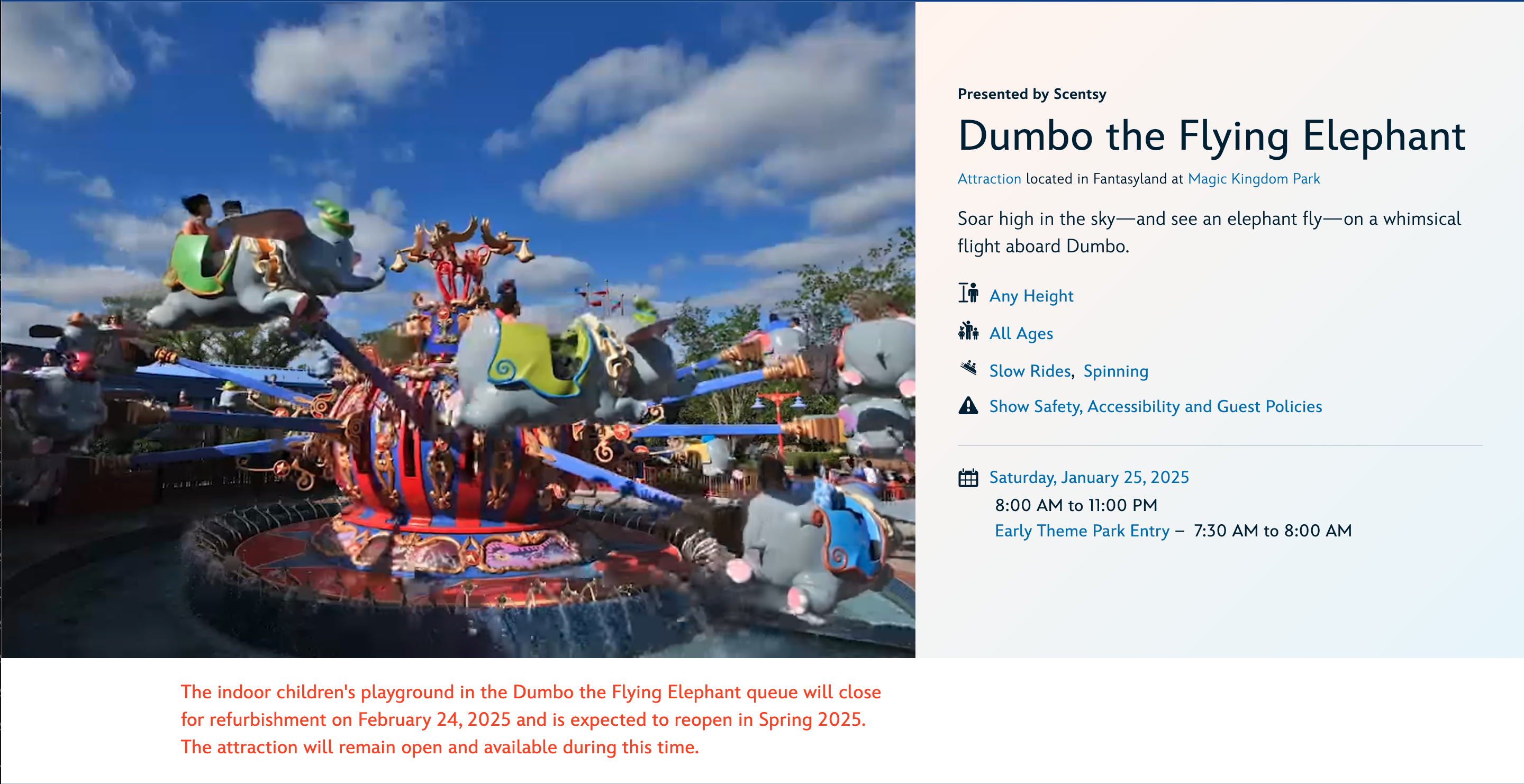 Starting on February 24th, the indoor children’s playground in the Dumbo the Flying Elephant queue will be closed for refurbishment. According to Disney, it is expected to reopen sometime in the Spring of 2025.