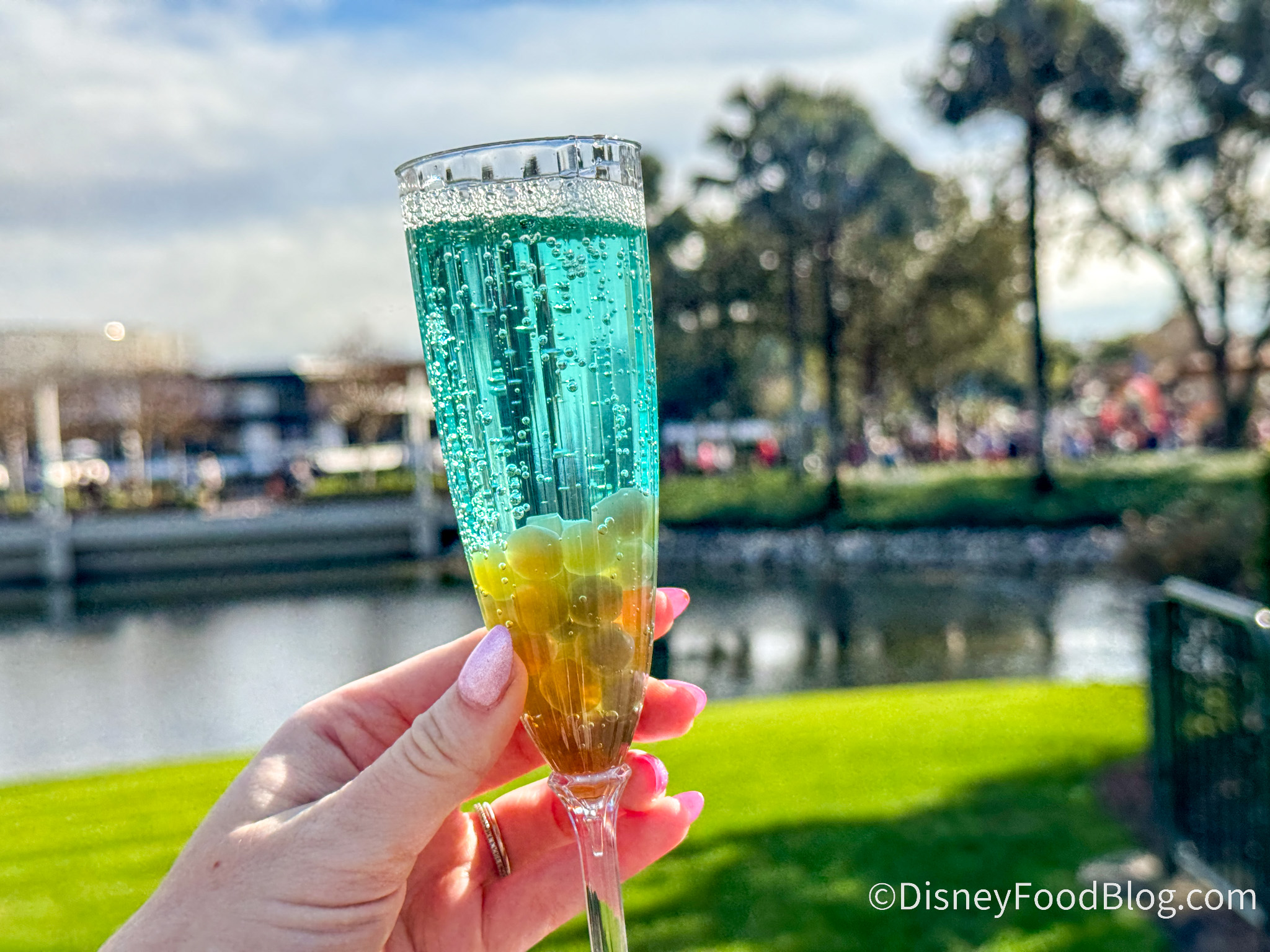 It still didn’t overly impress us this year. It is a nice drink with a bubbly wine flavor. You could taste the alcohol, and we thought the popping pearls looked great in the drink. When you could get the popping pearls in your sip, they added a great sweetness and texture, BUT it was very hard to get a sip with the popping pearls without taking a massive gulp.