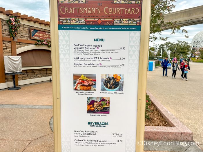 Over at the Craftsman’s Courtyard, you’ll find some elegant yet hearty dishes. Most of the items are familiar returning classics, but we do spot a new dish on the menu that we can’t wait to check out!