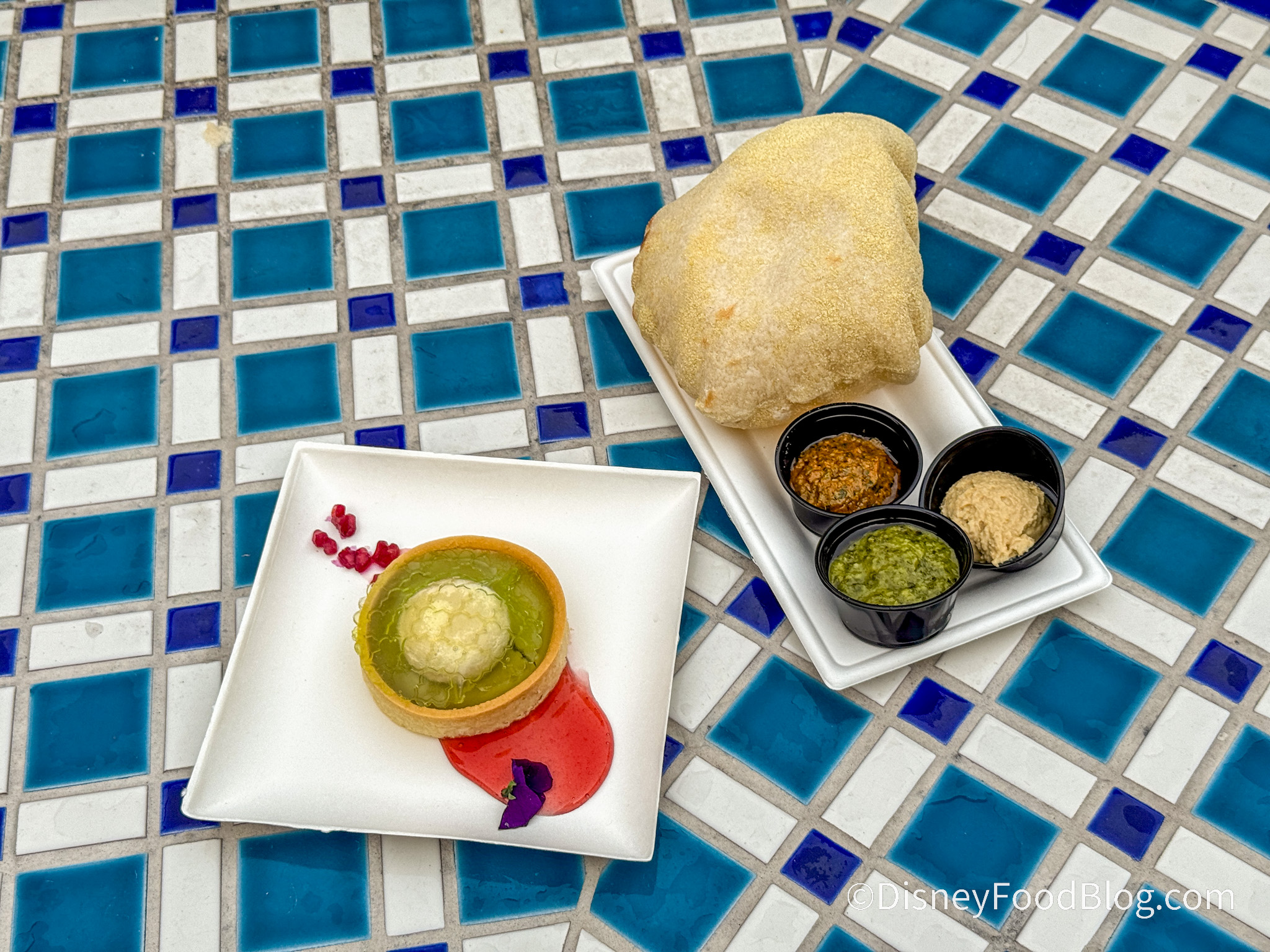 Finally, we had to end our meal here with a little something sweet. The Avocado-Coconut Custard Tart for $5.25 is new this year and is part of the Wonderful Walk of Colorful Cuisine. This is another plant-based item and is made with pomegranate cream and henna-inspired gelée Veil. We liked the flavor of this, and there was an aftertaste of something that reminded us of a stone-ground whole wheat crust. At first, this gave us a health food vibe, but we really appreciated the level of flavor it added. Warning: this might not appeal to everyone.