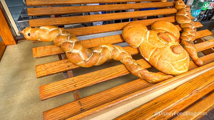 Over at Aunt Cass Café in San Fransokyo Square, you can grab two festival-exclusive eats for Lunar New Year — the Almond Cookie Bread Pudding and Snake Sourdough Bread!