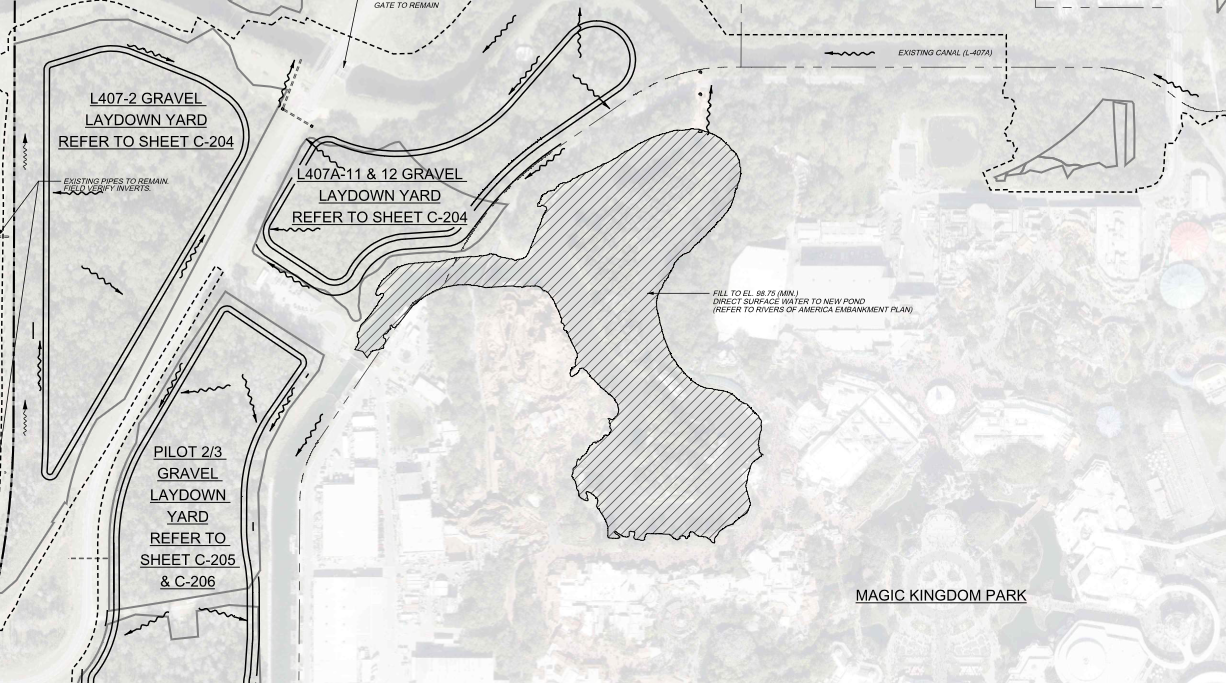 In August 2024, Disney filed a permit for 407 Basin Stormwater Modifications in relation to the new Cars area that will be coming to Magic Kingdom. The permit was for a project to build a treatment facility for stormwater drained from the area with “7.3 acres of surface water impacts to Rivers of America.” Then in September, the South Florida Water Management District requested additional information from Disney for the permit.