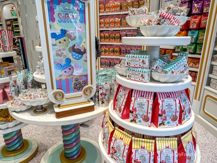 Welcome to the Disney Wonderful World of Sweets shop! As you can see, this place is bright, colorful, and packed with detail. The store debuted with new decorations, new Cast Member costumes, and new souvenirs. How exciting!