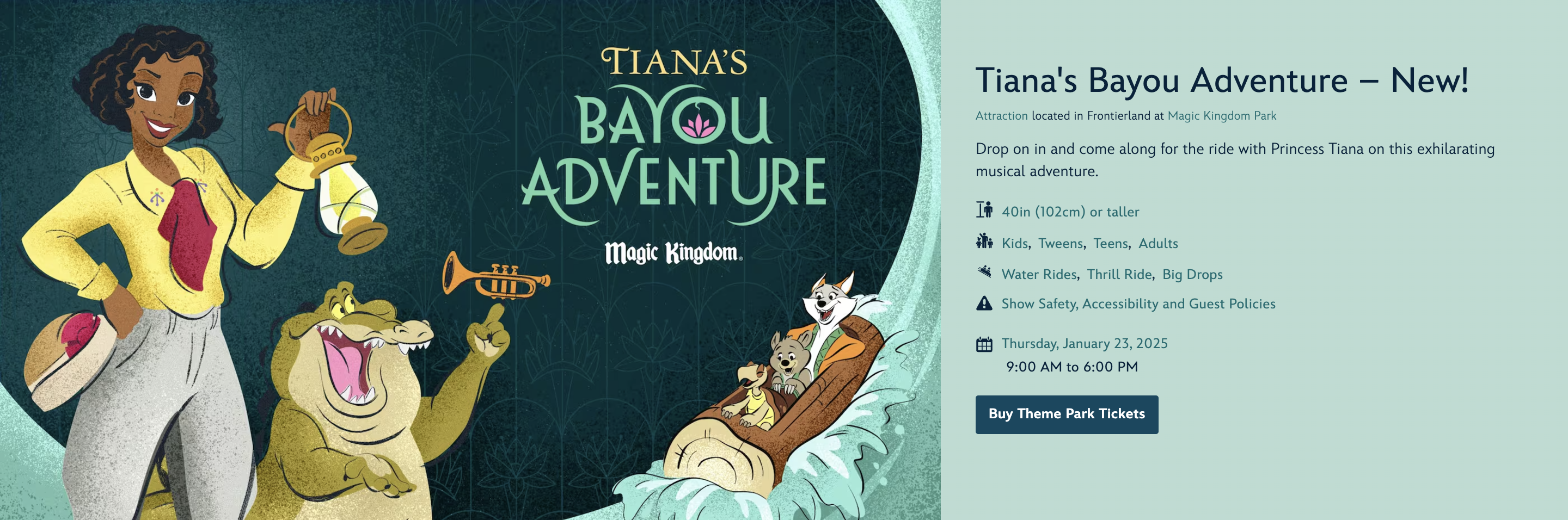Heads up if you’ve got an upcoming trip to Magic Kingdom planned! Tiana’s Bayou Adventure will be closing early on several upcoming days.