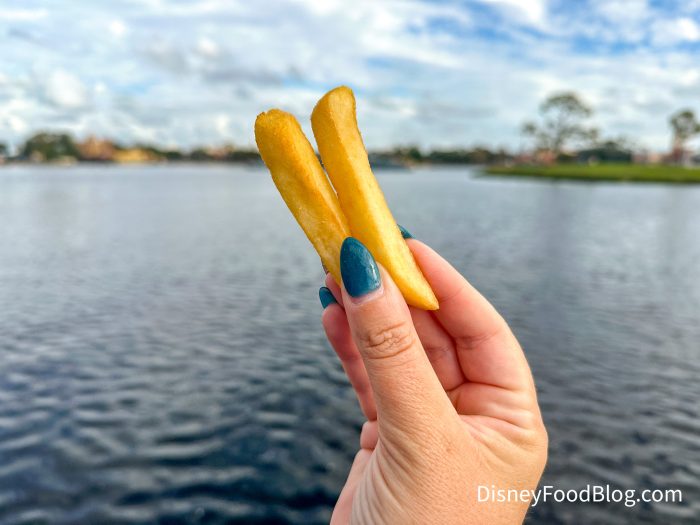 It comes with a side of chips, or, as we Americans say, french fries. These are not the usual fries you will find at most Disney World dining locations, as they are much thicker.