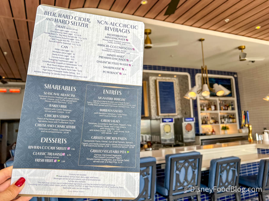 Overall, Bar RIVA is far from your typical pool bar. Between the elevated menu, exclusive cocktails, and gorgeous atmosphere, it’s a hidden gem at Disney’s Riviera Resort.