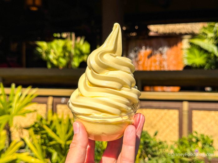 DOLE Whip comes in various forms around Disney World and Disneyland. You can simply get a cup of DOLE Whip soft-serve, DOLE Whip floats, DOLE Whip in drinks, and much more. Its creamy, fruity goodness is hard to top, especially on a hot day in Florida. Normally, a cup of the soft-serve will cost about $6, which isn’t terrible to shell out for this yummy snack. However, there is one place where the cost of some DOLE Whip is about double that amount, but we’re willing to pay it EVERY TIME.
