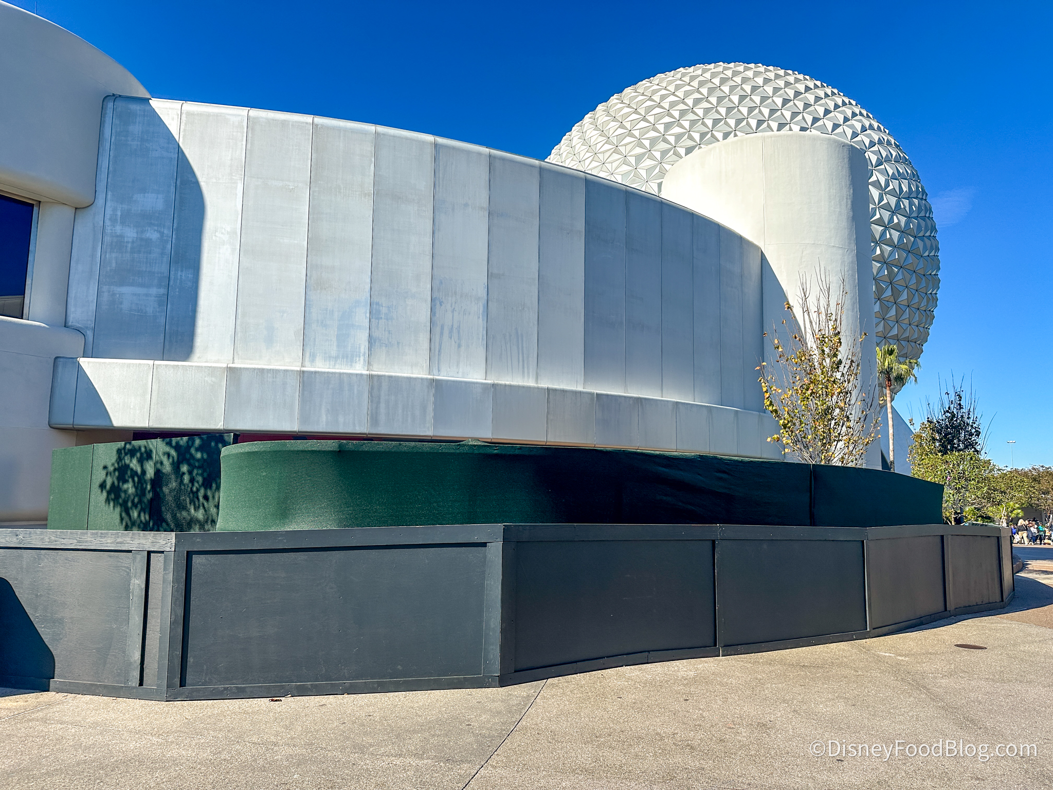 Spaceship Earth will soon be home to a new lounge at EPCOT! The lounge is going to be located in the structure at the exit of the Spaceship Earth attraction, which sits behind the iconic sphere and is set to open this spring. We’ve already spotted construction walls up, and a new permit has been filed for more work in this area. Unfortunately, the permit doesn’t tell us exactly what it’s for, so we’ll just have to wait and see.