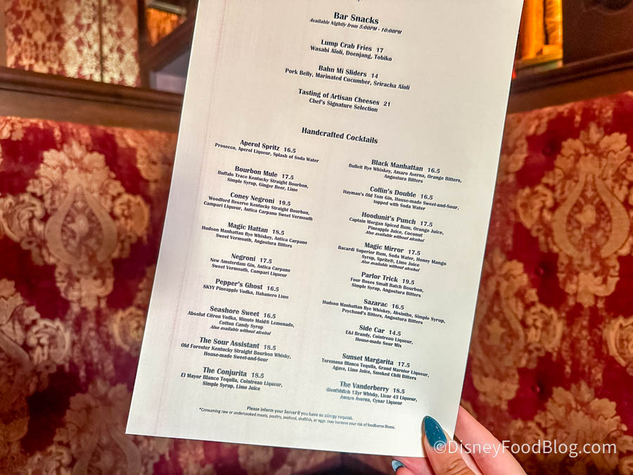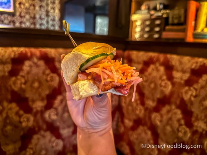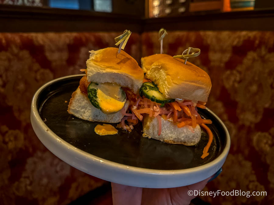 AbracadaBar has always been about the atmosphere, and in that department, it still delivers. The theming is top-notch, and it’s a great spot to escape the crowds and soak in some Disney magic. However, the new food additions don’t quite live up to the bar’s enchanting ambiance. Both the Bánh Mì Sliders and Lump Crab Fries felt underwhelming, and while the Hoodunit’s Punch was enjoyable, it didn’t offer anything particularly memorable.