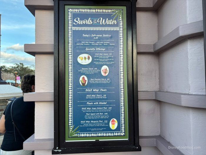 The Dark Chocolate Cone can be found at Swirls on the Water, which features a “full menu of DOLE Whip items—including cool floats, “soft-surfed” cups and dessert nachos” as well as the “ultimate sweet treat” the DOLE Whip flight, which features “a trio of delicious flavors to savor.”