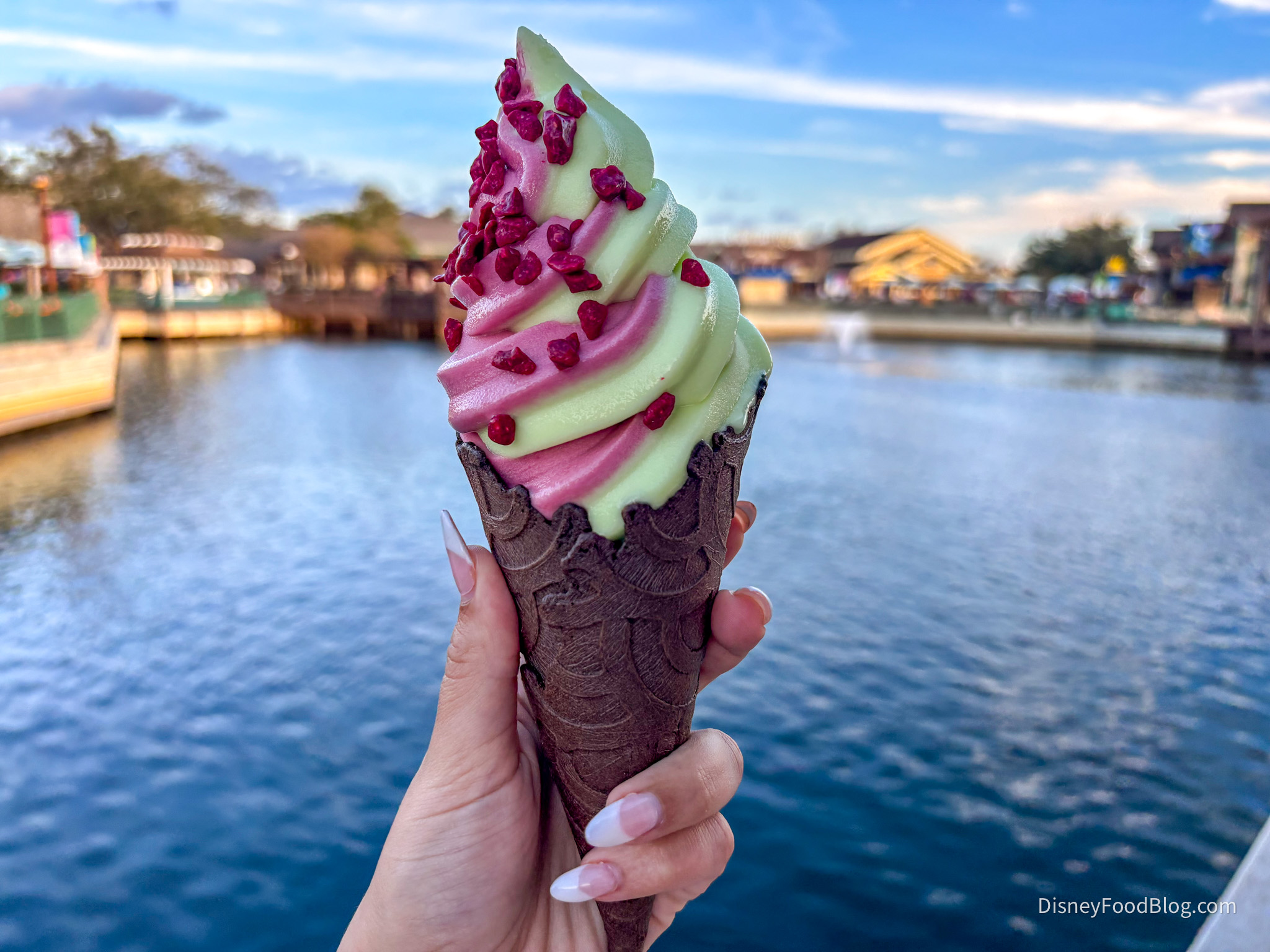 New snack options are ALWAYS coming to Disney World, and we’re always eager to try them! Now we’re headed to Disney Springs to try one of the newest cones at Swirls on the Water in Disney Springs.