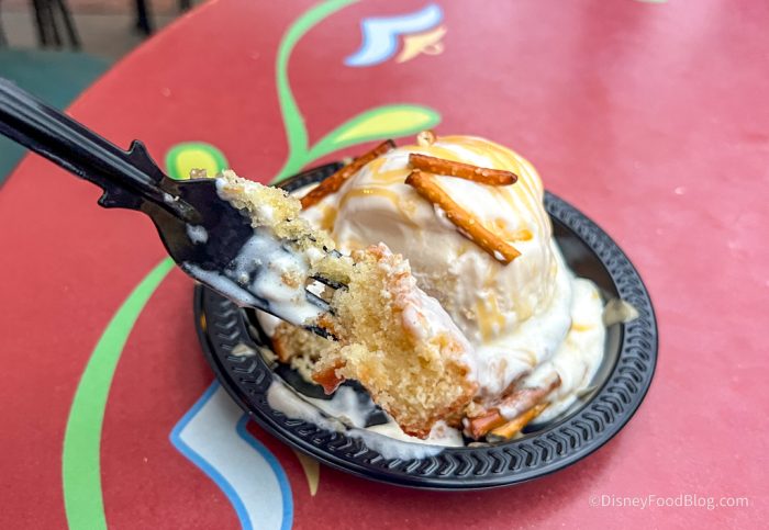 Time for dessert! We got the Salted Caramel Butter Cake Sundae (Um…YUM!!!), which is topped with Vanilla Ice Cream, Salted Caramel, and Pretzel Sticks. You can get this one for $8.49.