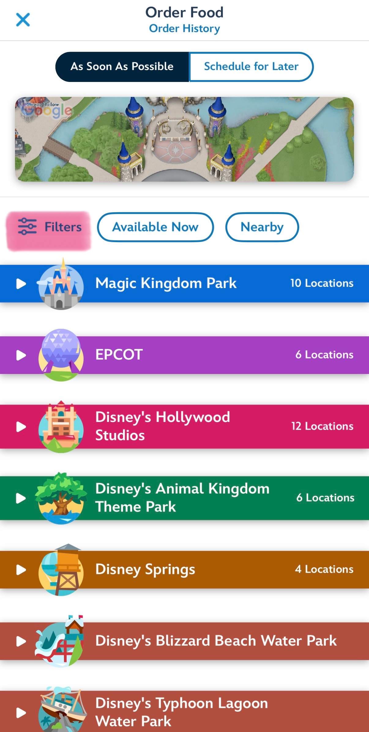This hack has changed our lives because it saves us time, as we don’t need to scroll through all the options. It is a great tool to help you figure out what is nearby and available right away. You can still use filters, even if you plan to schedule a Mobile Order! Although this feature is not the newest Mobile Order feature, we are glad that Disney is continuing to improve the Mobile Order process.