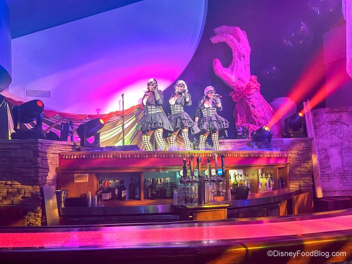 For the media event, we got some fun special Mardi Gras entertainment straight from the Cursed Coconut Club, which is on CityWalk. Every year for Mardi Gras, the Red Coconut Club gets transformed into the Cursed Coconut Club. Fun, right?